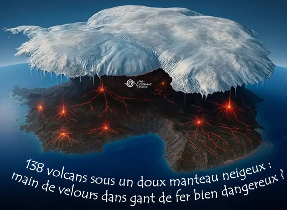L’Antarctique semble un désert blanc, glacé et inerte. À vrai dire, son côté occidental est posé sur une des chaînes volcaniques les plus denses de la planète, avec au moins 138 volcans (dont certains s’élèvent à plus de 4000 mètres, entre leur socle rocheux et leur sommet). Ils échappent à notre vue sous les kilomètres de glace qui les recouvre…