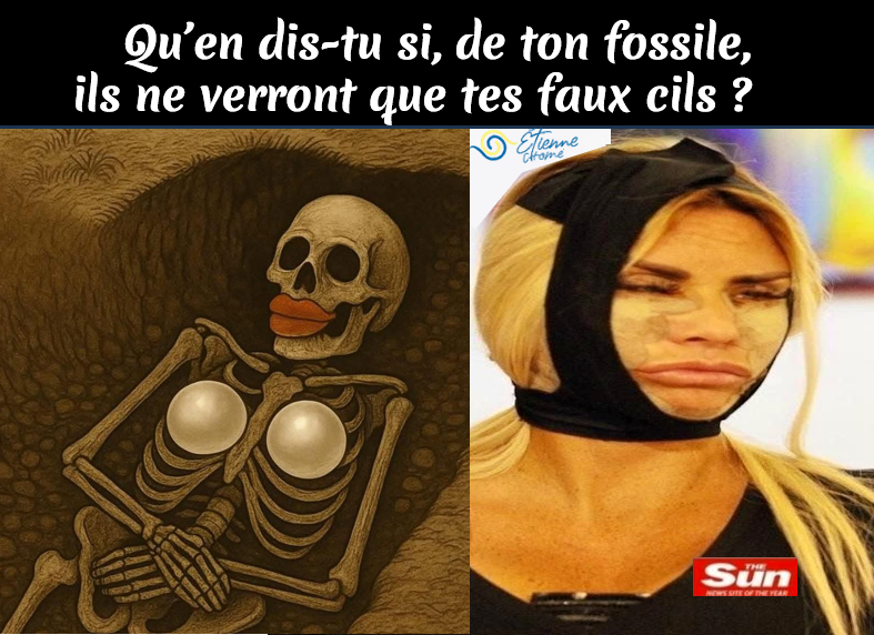 La photo de droite a été publiée dans le tabloïd SUN : « Du haut de ses 41 ans, Katie Price ne supporte pas l’idée de vieillir. La starlette de téléréalité accro à la chirurgie esthétique est passée sur le billard pour un lifting du visage dans une clinique d’Istanbul, en Turquie. Elle a aussi opté pour une réduction mammaire. La bimbo britannique défigurée a fait peur à ses 5 enfants en enlevant ses pansements » (https://www.20min.ch/fr/story/sa-chirurgie-esthetique-traumatise-ses-enfants-700938034773).