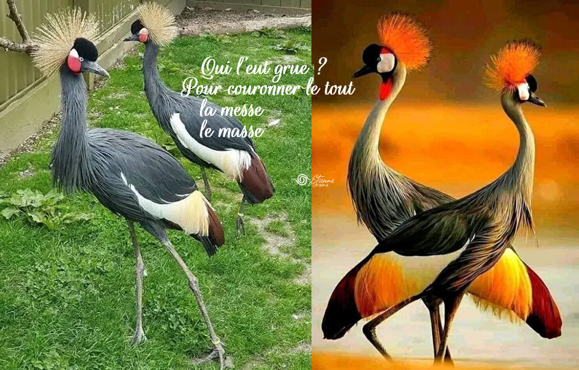 Les grues couronnées, hautes sur patte, m’enseignent que la grâce n’a pas besoin de bruit, que les plus belles couronnes royales ne sont pas sur un trône car elles dansent avec le ciel dont elles se reçoivent !