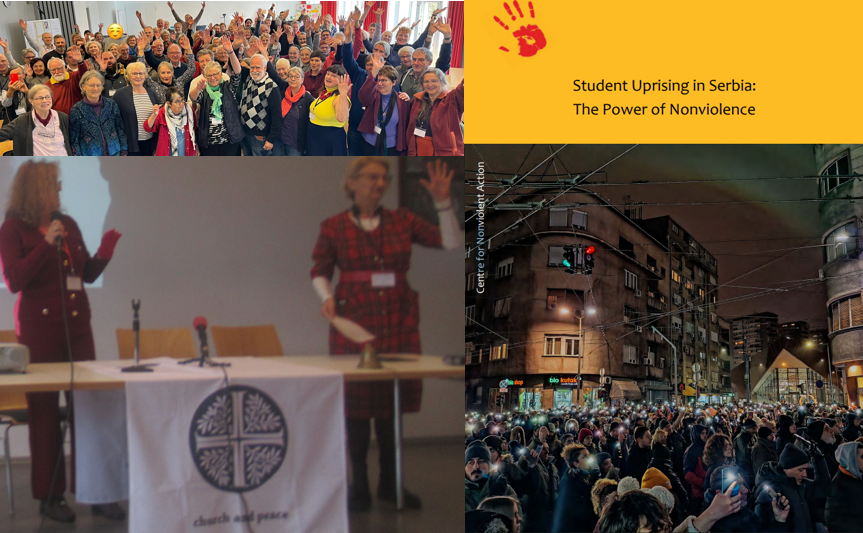 Parmi mille trésors, nous avons aussi fait une place importante à des femmes engagées dans le mouvement non-violent contre la corruption et pour un changement politique en Serbie : cf. https://www.church-and-peace.org/fr/2025/10/church-and-peace-appelle-a-soutenir-la-resistance-non-violente-et-la-revendication-delections-libres-en-serbie/
